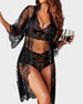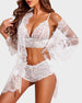 Delicately crafted from sheer floral lace, this 3-piece set flatters your curves with a deep V-neck trimmed in eyelash lace and 3/4 sleeves for graceful coverage. Lightweight and breathable, it feels as good as it looks — romantic, airy, and effortlessly elegant.