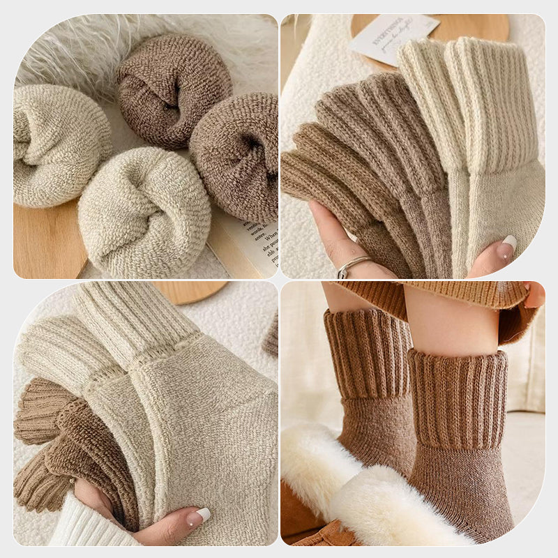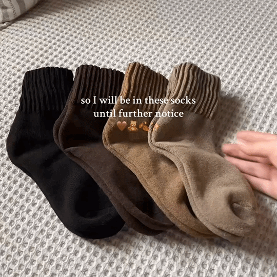 Thick, cozy, and so comfy! I absolutely love how soft they feel and how warm they keep my tootsies. Perfect for lounging and staying cozy!