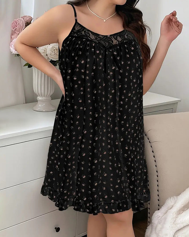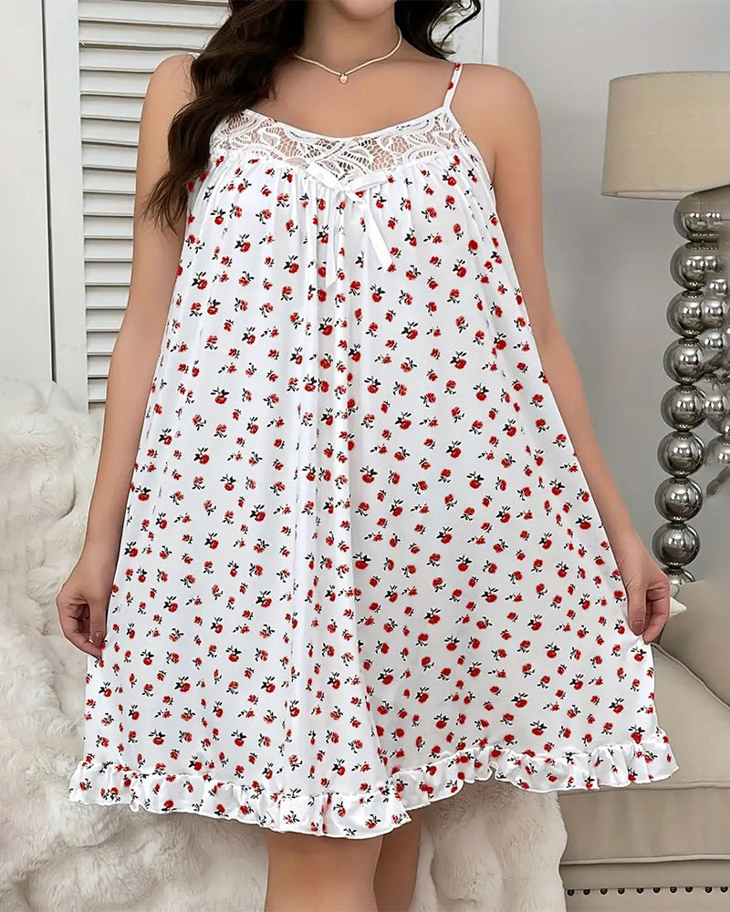 Slip into something that feels like a dream. This ditsy floral nightdress combines cool, breathable comfort with an ultra-feminine twist. The lace-trimmed neckline flatters your curves, while the charming bow adds a romantic touch. Finished with a playful ruffle hem, it’s perfect for stylish lounging or a restful night’s sleep.