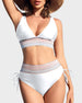 Our high-waisted bikini features tummy control with ruched detailing and a wide drawstring waistband, creating a flattering, slimming effect that highlights your waistline.