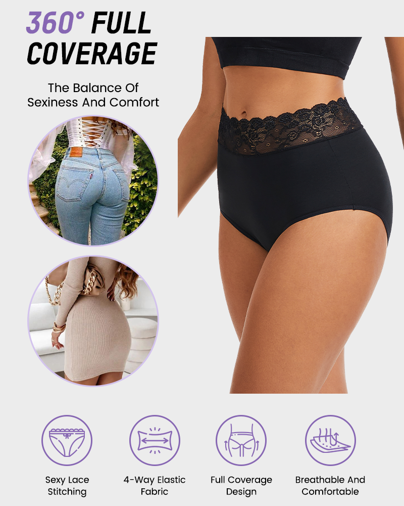 Delicate stretch lace hugs your waist with a soft touch, while breathable cotton fabric keeps you fresh all day. Added spandex enhances elasticity and resilience. Double-layered crotch ensures airflow and comfort — no rolling, no digging, just effortless wear.