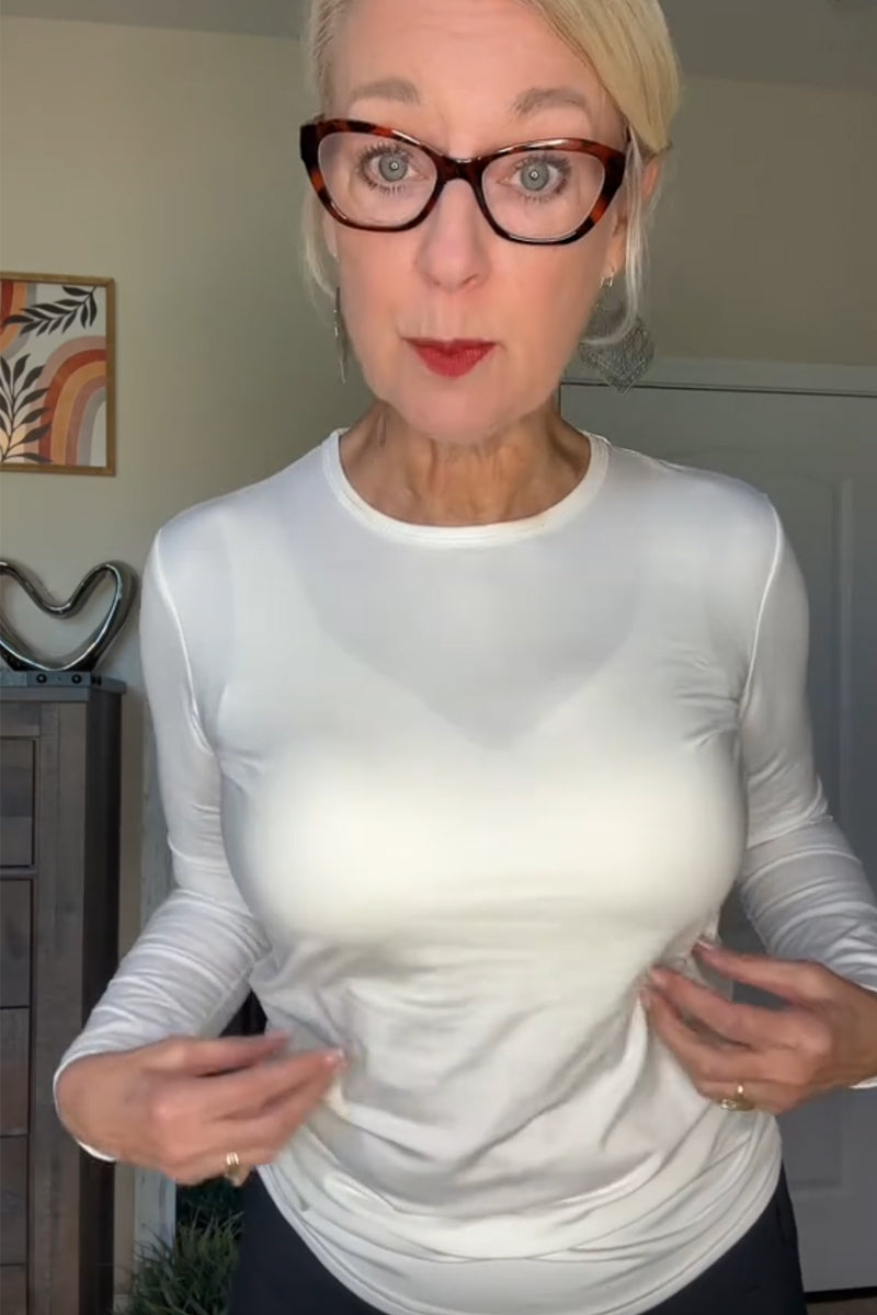I used to avoid so many of my favoriteshirts because they created that dreaded"tent effect." This bra is a complete gamechanger! lt gently minimizes without flattening, so my clothes fit beautifully andI feel so much more proportional. it's truly given me the confidence to wear whatever l