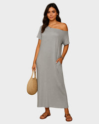 More than just a lounge dress—this off-shoulder maxi is your go-to piece for sleep, travel, lounging, or a casual day out. With functional side pockets and a wide range of colors, it’s versatile enough to become one of your summer favorites, blending practicality with effortless style.