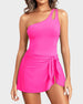 Turn heads at the beach with this effortlessly elegant one-shoulder swim dress. Designed to combine figure-enhancing support with a fashion-forward silhouette, this one-piece offers tummy control, a flattering skirted hem, and all-day comfort. Whether you're lounging by the pool or walking along the shore, it’s the perfect blend of chic and confidence.