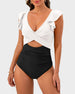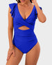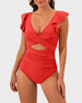 Introducing the Ruffle Sleeve Cut-Out Ruched One-Piece Swimsuit, a stylish and playful choice that combines feminine flair with modern design. This swimsuit is perfect for making a statement during your beach or pool outings.