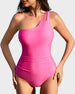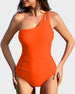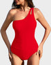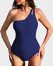 Embrace your inner goddess with this stunning one-piece swimsuit, featuring a chic one-shoulder design that beautifully accentuates your neckline and shoulders, exuding confidence and style at the beach.