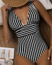 Are you tired of settling for swimwear that doesn't flatter your figure or lacks style? Say goodbye to your beachwear woes with the Striped Deep Plunge Ruched One-Piece Summer Swimwear!