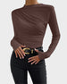 Tired of basic tops that look plain and shapeless? This ruched mock neck tee is your easy way to look effortlessly stylish every day. Soft, flattering, and endlessly versatile, it hugs your body just right — from desk to dinner to weekend plans.