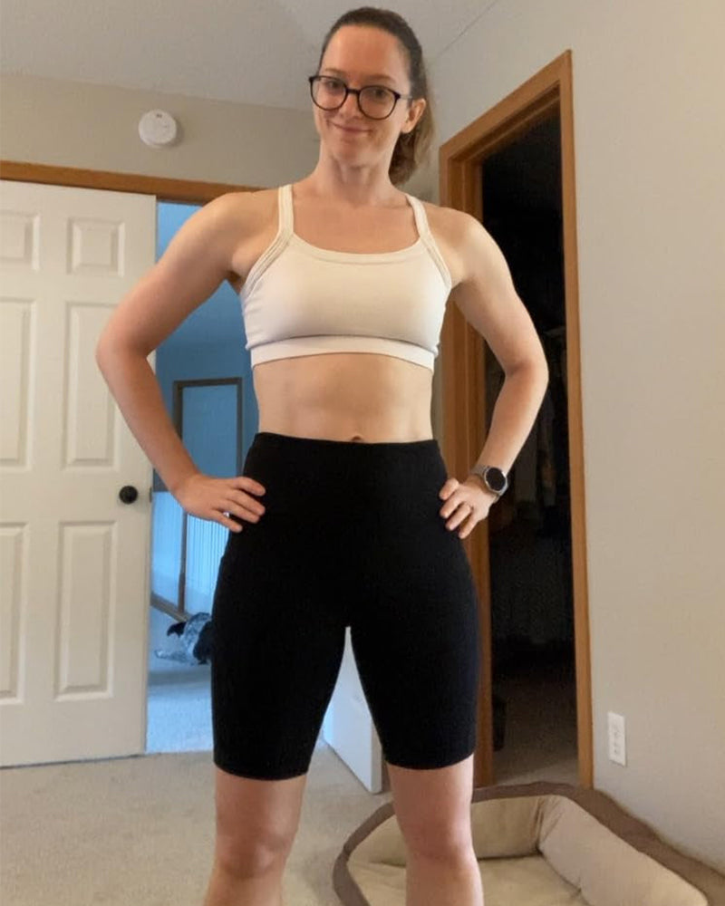 Love these biker shorts! I got them in black and wear them with everything! They are very comfortable, they are not too tight or loose.