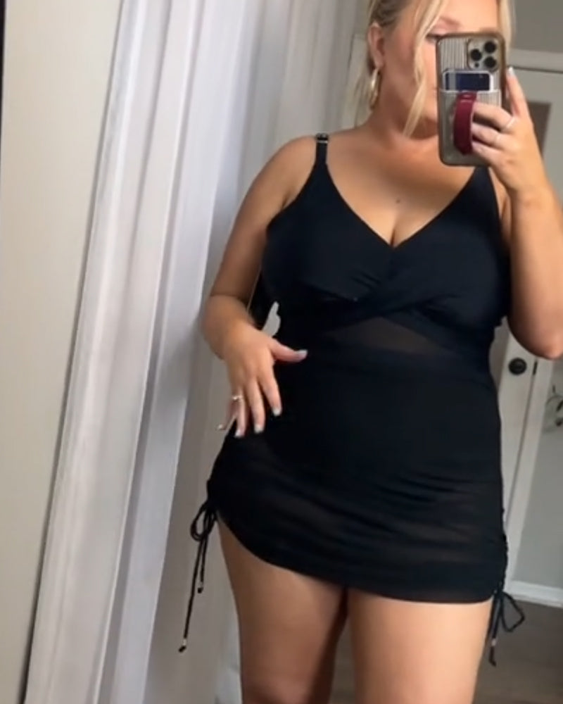Adjustable wide straps and a soft mesh sarong overlay offer all-day comfort and easy wear. The supportive design molds gently to your body, creating a sleek silhouette that moves with you—stylish, breathable, and effortlessly flattering from sunrise to poolside.